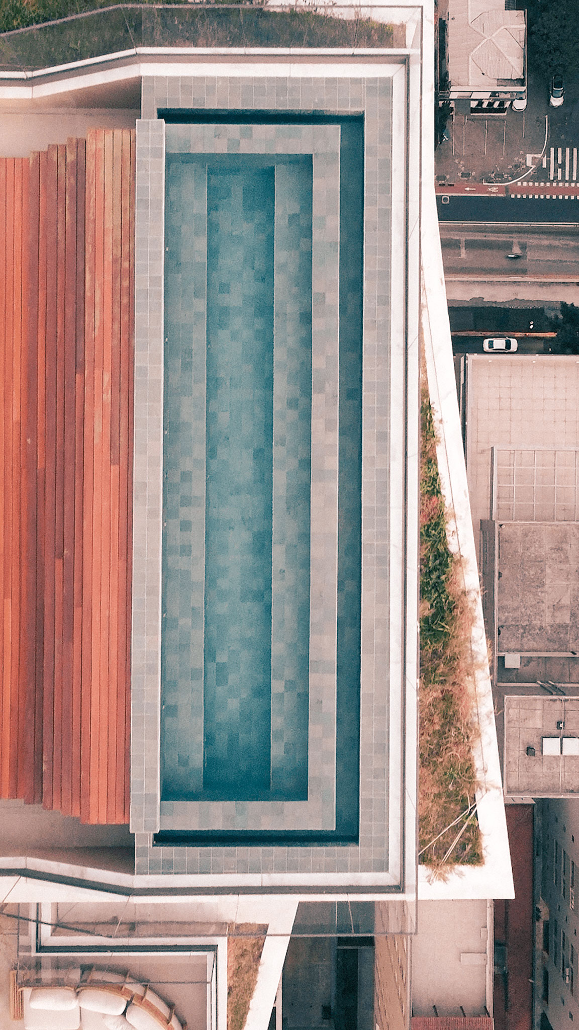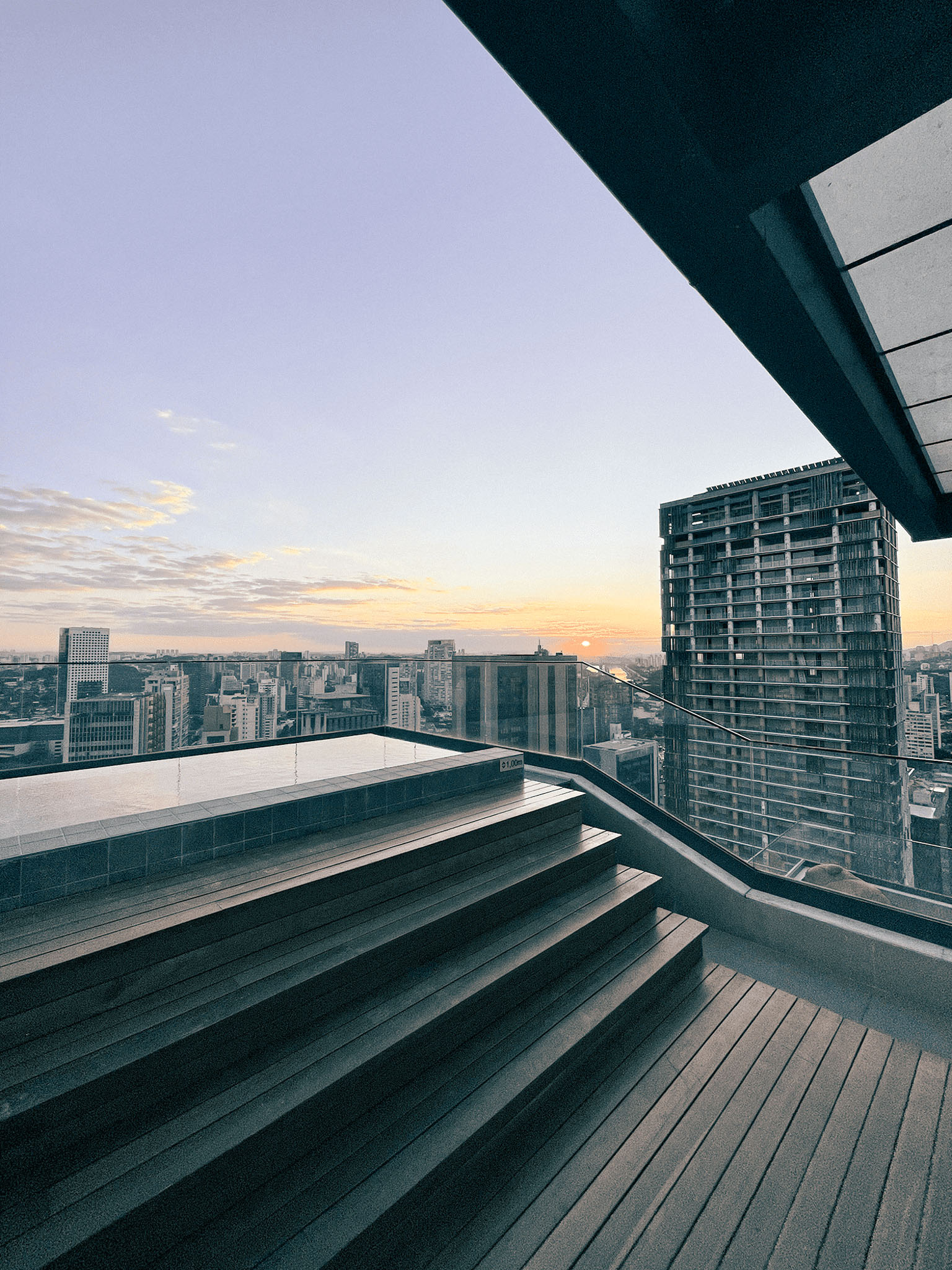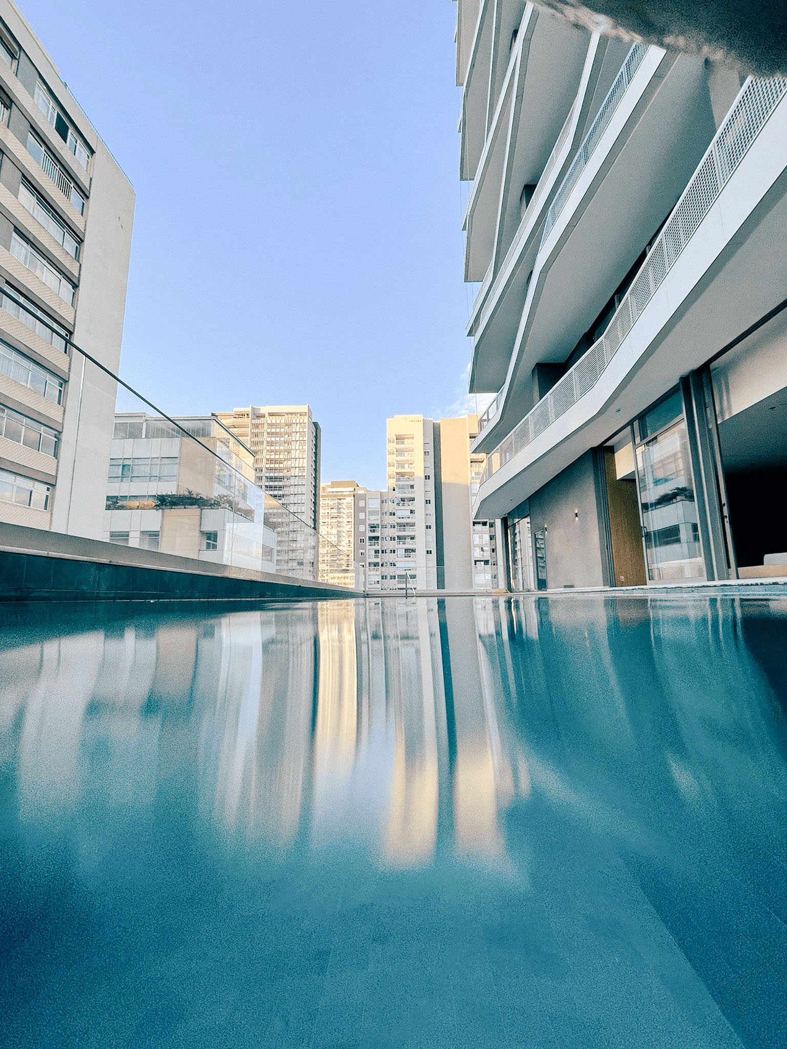 No projeto feito para o JFL125, a proposta foi criar uma piscina interativa, com bancos para a apreciação do skyline. Além disso, o aquecimento da água promove um efeito sem igual nesta paisagem nas noites frias de São Paulo. Já na piscina presente no 5º pavimento, diferentemente da cobertura, ela se fecha para o interior do lote com o intuito de se distanciar da dinâmica da Avenida Rebouças, se tornando um refúgio relaxante para os moradores.