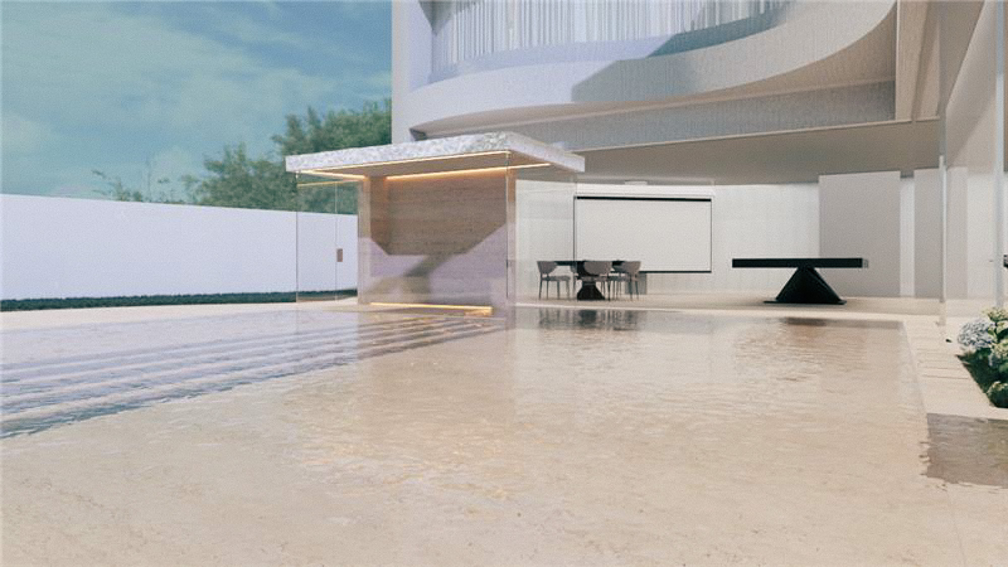 O encontro entre o pôr do Sol e a água criam um efeito impressionante neste projeto
